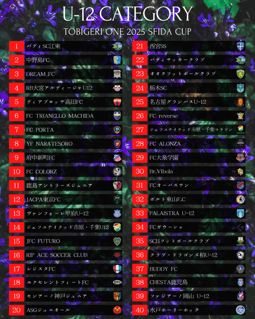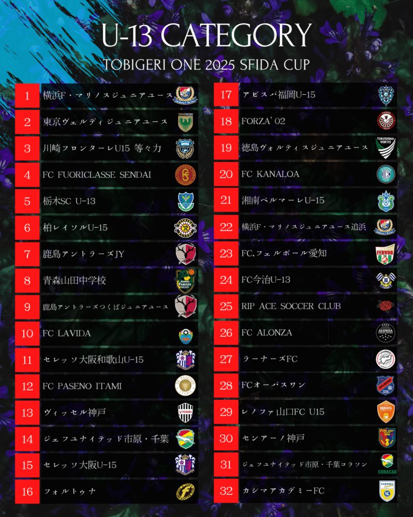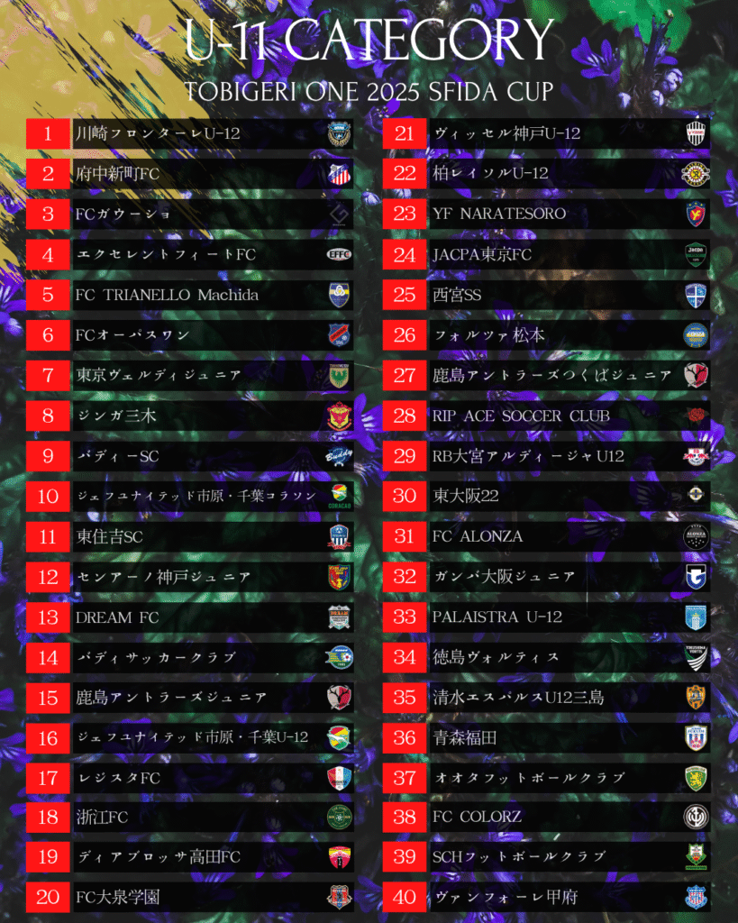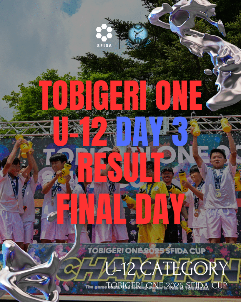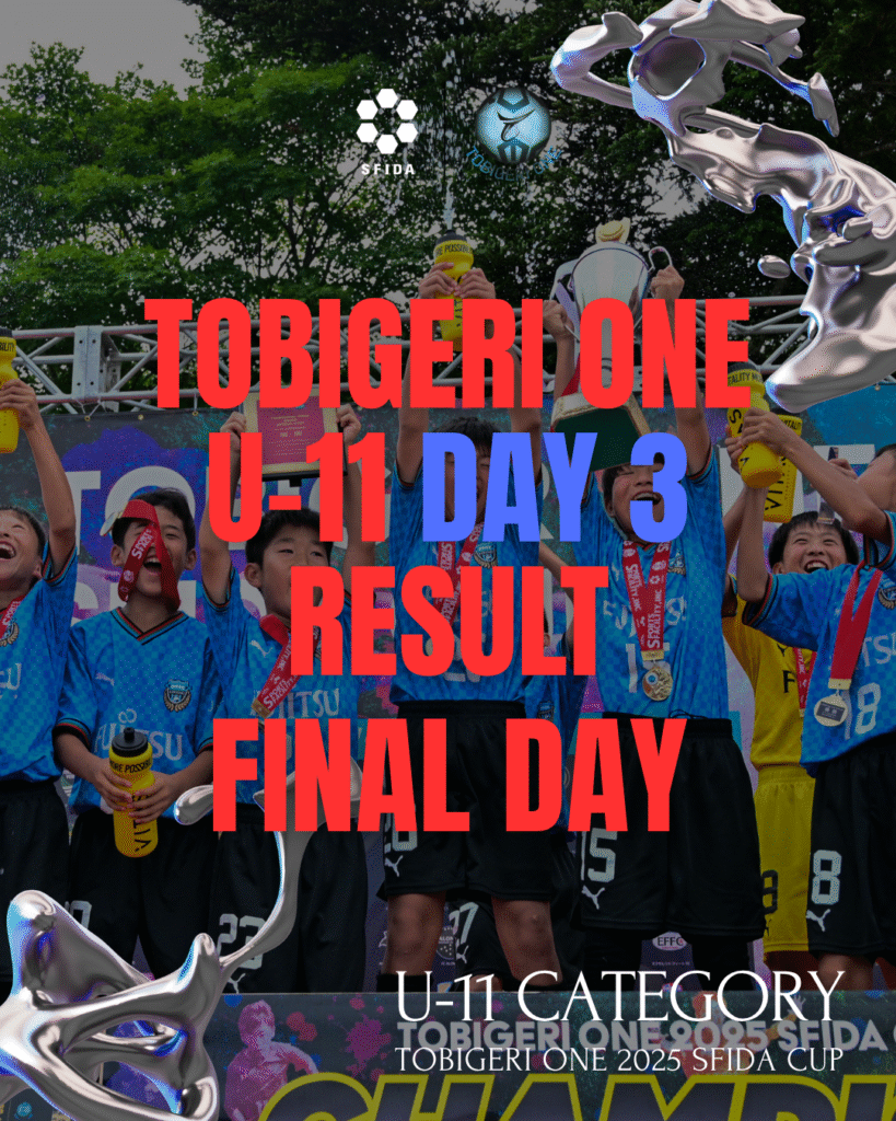 U-11 TOBIGERI ONE 2025 SFIDA CUP 最終結果速報🌟最終結果 優勝 川崎フロンターレU-12(神奈川県) 準優勝 府中新町FC(東京都) 第3位 FCガ…