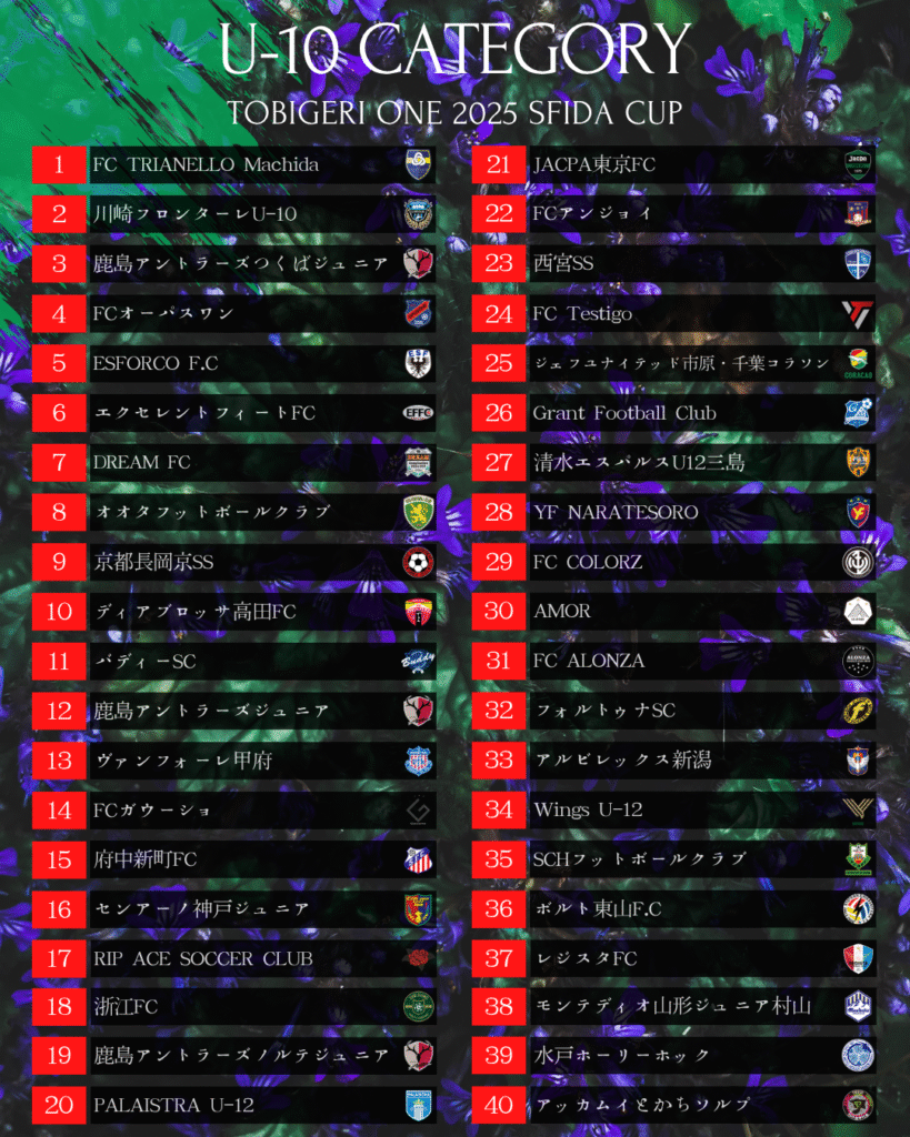 U-10 TOBIGERI ONE 2025 SFIDA CUP 最終結果速報🌟最終結果 優勝 FC TRIANELLO Machida(東京都) 準優勝 川崎フロンターレU-10…